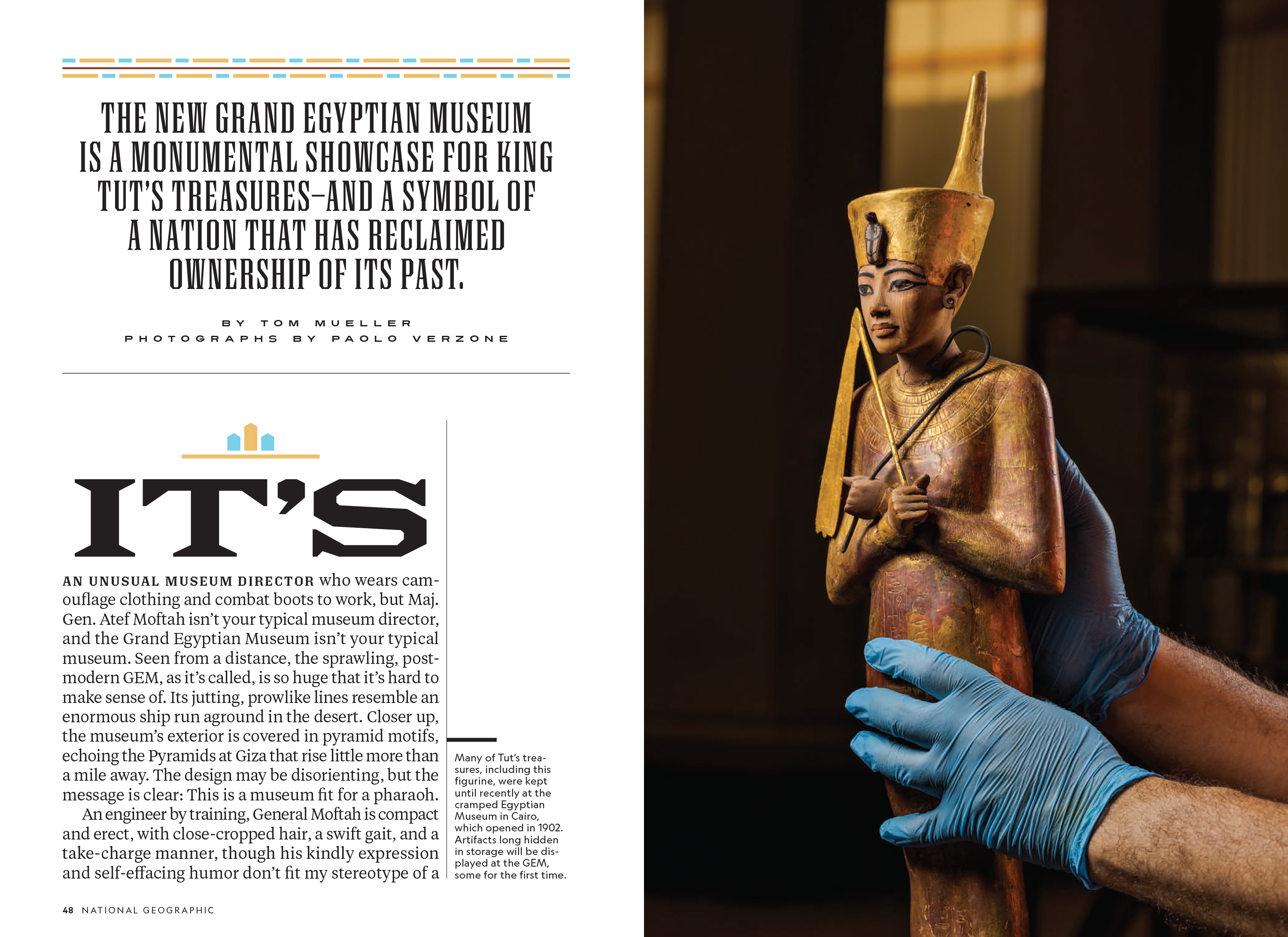 I was ready to build the final headlines, but I had a new problem: we still had weeks to go before we would get the text. I like to work, so I gave myself more work to do while we waited. I did more research on hieroglyphic systems. That led to new ways to emphasize and encapsulate important words within the headlines. I also started building a library of ornaments that echoed details in the photographs. TJ was showing me layouts and I offered to build these ornaments into elements that could be used outside of the headlines. Then I drew some decorative drop caps. Then I made a typeface that could be used for large callouts instead of Earle.
